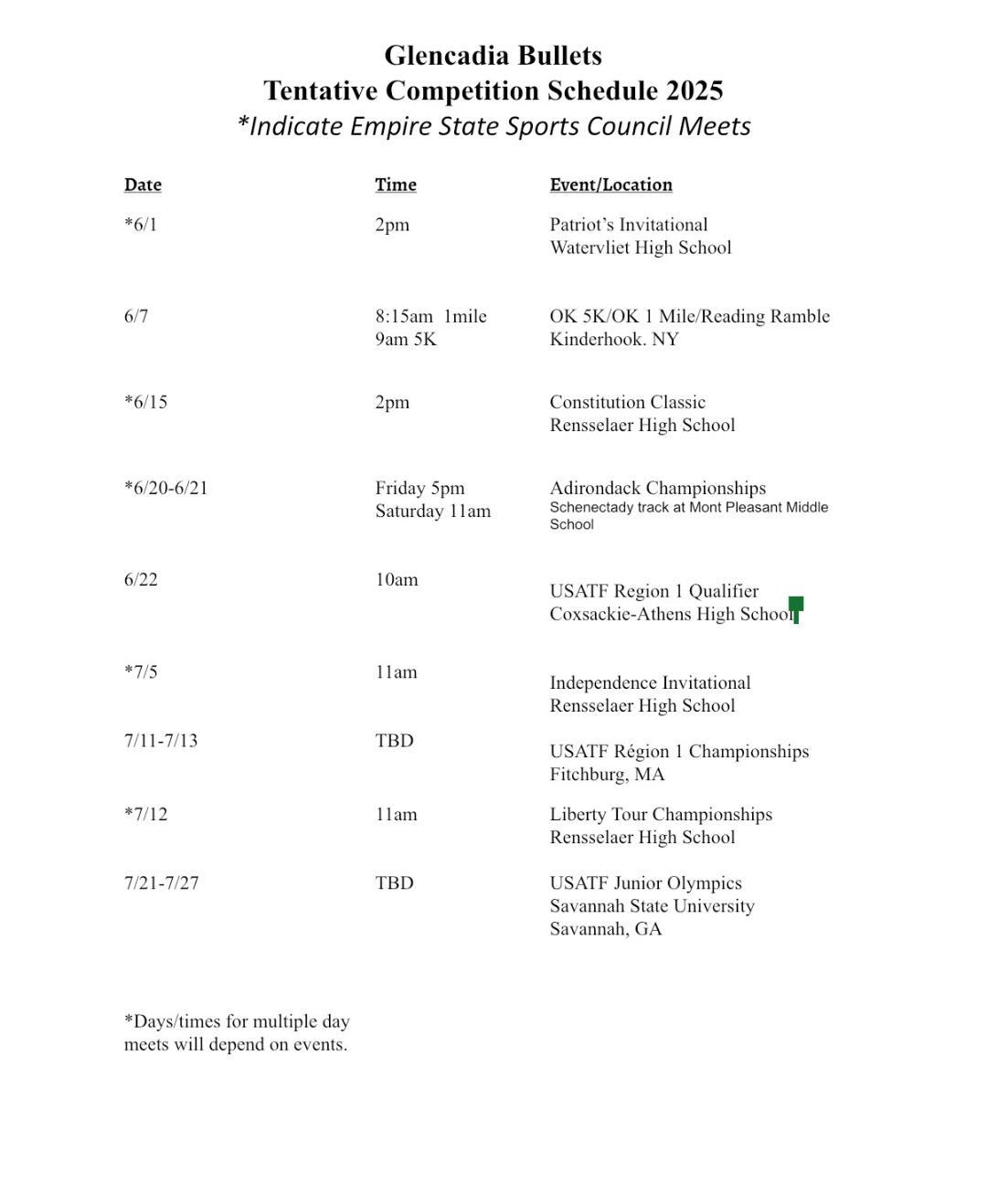 Please contact one of the meet coordinators at glencadiabullets@gmail.com to register your athlete!